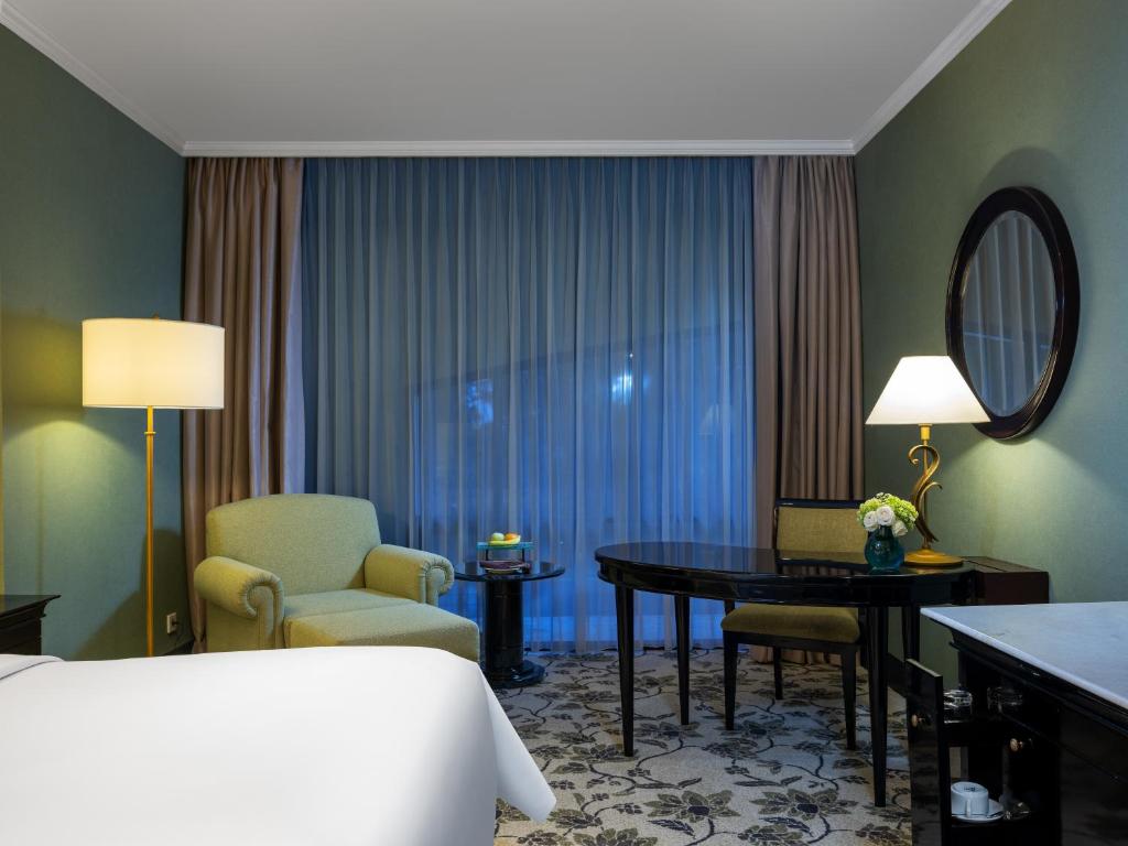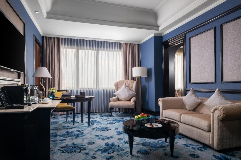 تتميز الغرف الفسيحة بتصميمات داخلية أنيقة بألوان الكريمي والفضي، وتضم تلفزيون بشاشة مسطحة مع قنوات فضائية، ومساحة واسعة للمكتب. كما تحتوي على آلة لتحضير الشاي والقهوة، وثلاجة صغيرة.