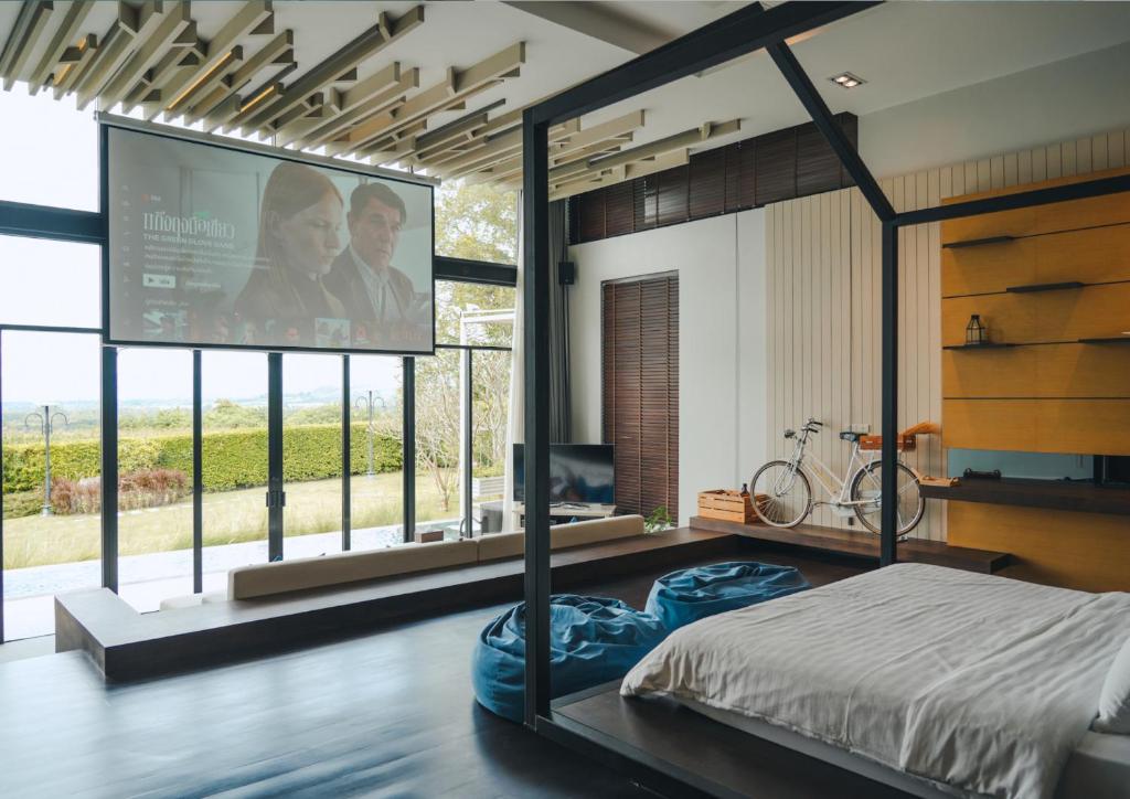 تتميز كل فيلا خاصة بديكور أنيق بألوان هادئة، وتضم مسبحًا خارجيًا خاصًا مُدفأ، وحمامًا يابانيًا، وساونا. تحتوي منطقة المعيشة على نوافذ كبيرة وأريكة تطل على الحديقة. كما تحتوي كل فيلا على تلفزيون بشاشة مسطحة، وخزنة، وآلة صنع القهوة، ومنطقة لتناول الطعام. يضم الحمام الخاص حوض استحمام سبا، ودُشًا مطريًا، ولوازم استحمام مجانية، ومجفف شعر.