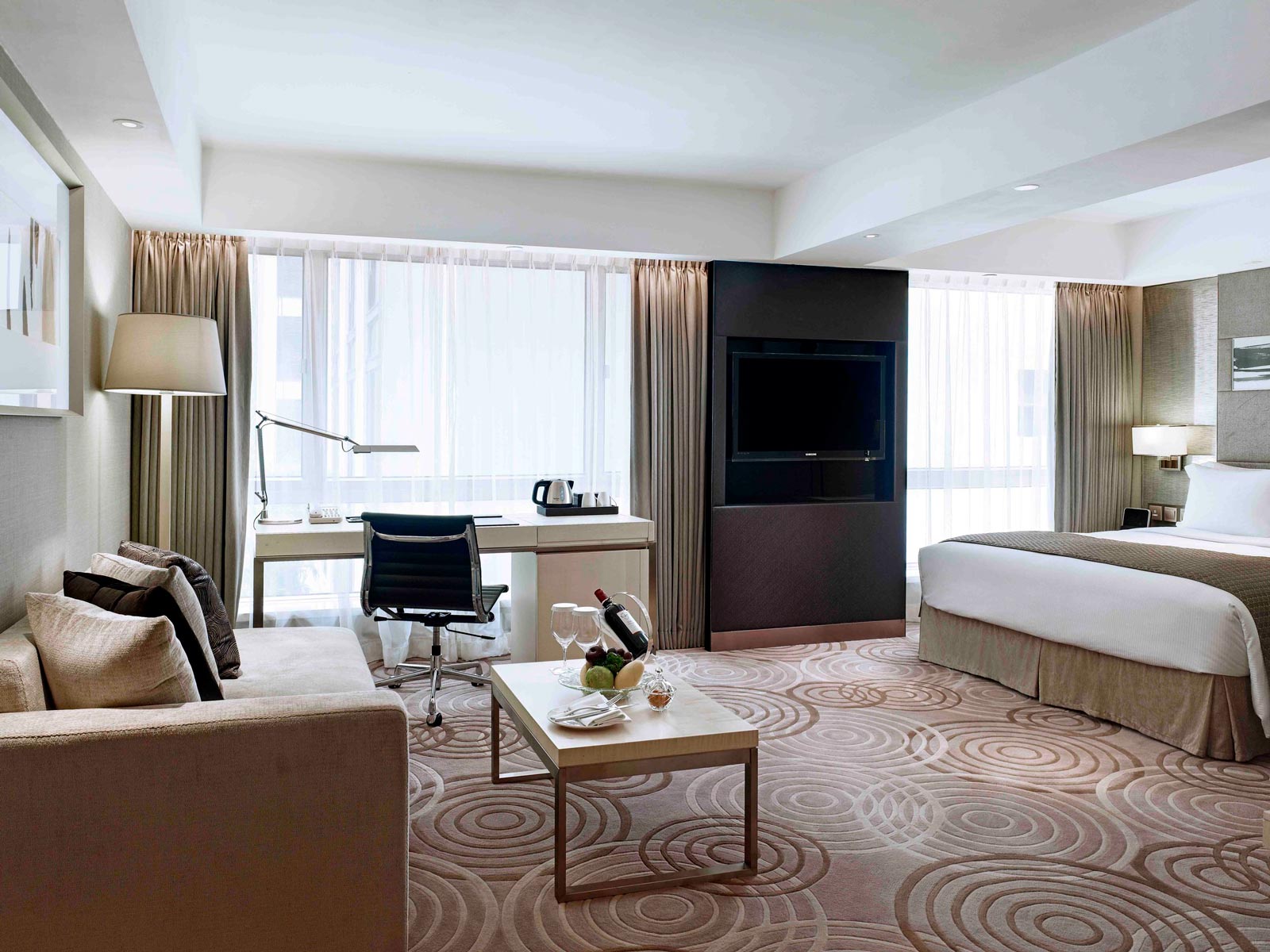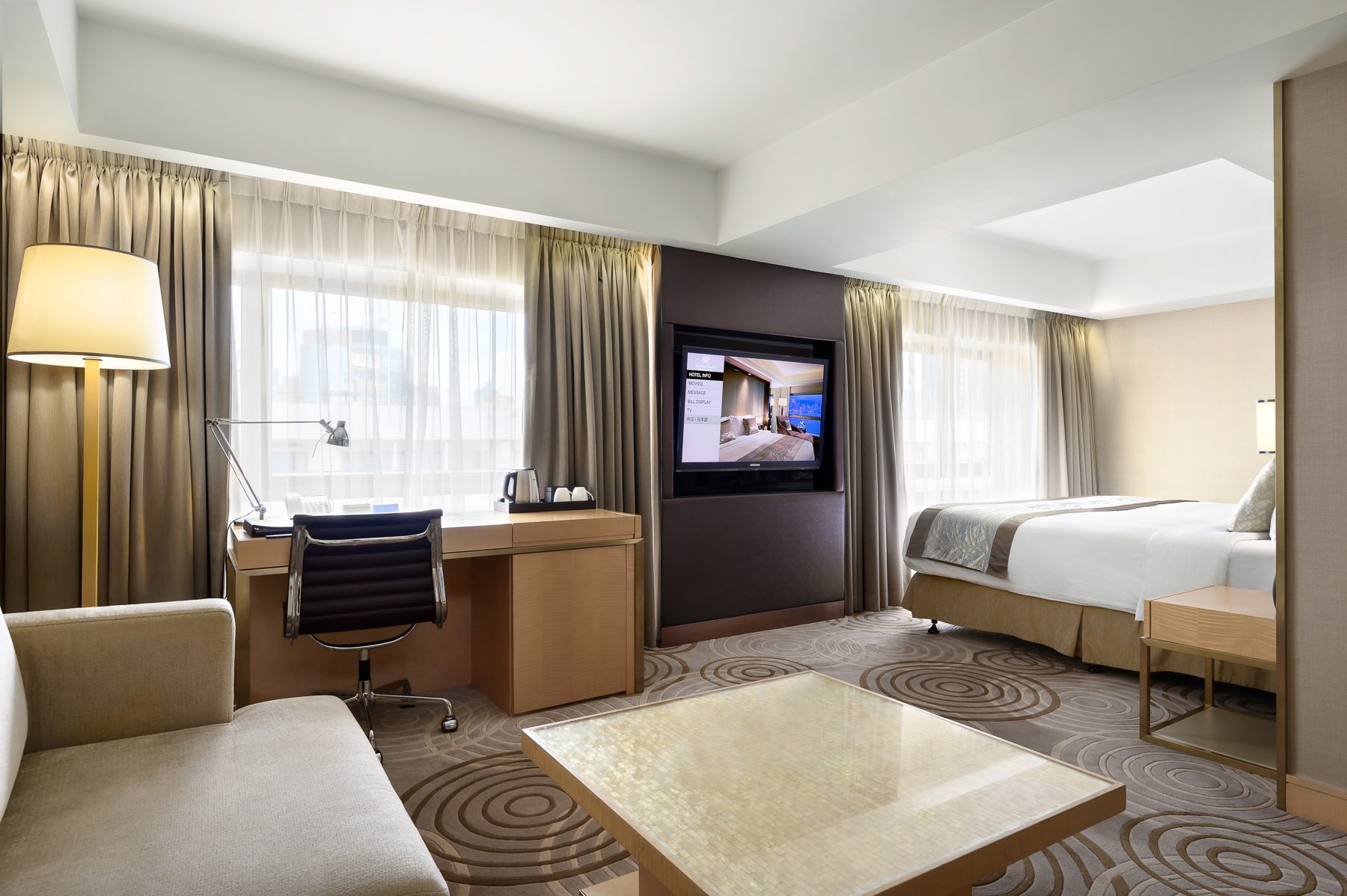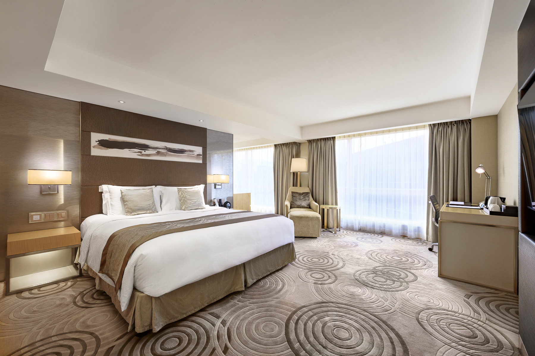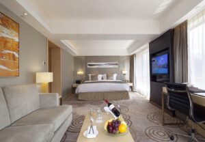 تتميز الغرف الفاخرة المكيفة بأثاثها الأنيق، وتحتوي على خزنة داخل الغرفة، ومرافق لتحضير الشاي والقهوة. كما يضم الحمام الرخامي الملحق حوض استحمام أو دش، ومجفف شعر، وأرواب حمام، ولوازم استحمام مجانية. وتتوفر في الغرفة مياه مُفلترة.