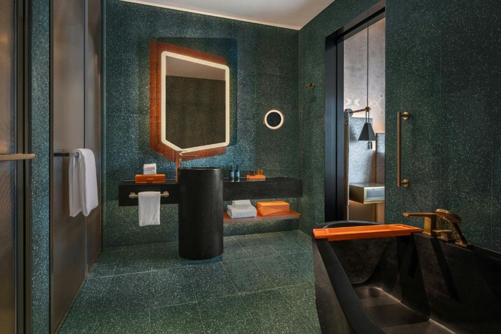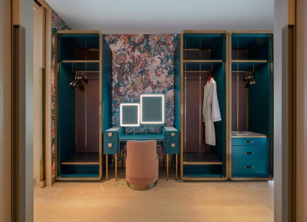 يوفر مكان إقامة “W Macau – Studio City” للضيوف غرفاً مكيفة تحتوي على مكتب وغلاية وصندوق ودائع آمن، بالإضافة إلى تلفزيون بشاشة مسطحة وحمّام خاص مع دش. تحتوي كل غرفة في “W Macau – Studio City” على بياضات أسرّة ومناشف. ., كما